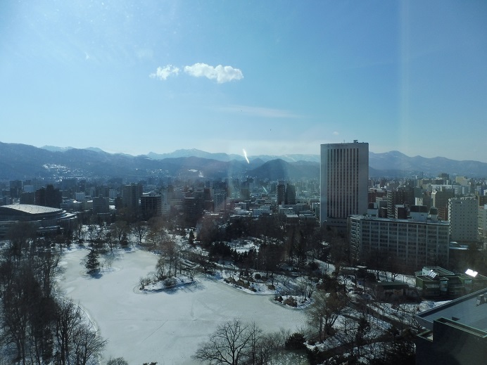 はエレベーターホールの窓から撮った、中島公園側の写真です。