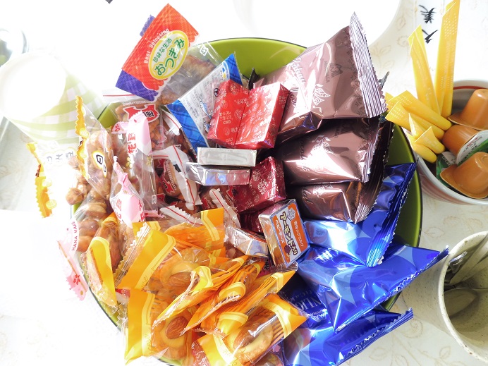 このほかに、食後のおやつ(?)というか、おしゃべりしながらちょっとつまめるように、個包装のものを何種類か盛り合わせて置いてあります。
