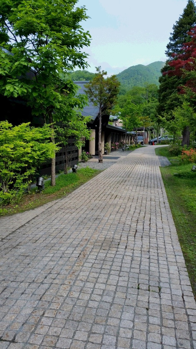 バスを降りたらホテルの入口まで石畳が続いておりました。