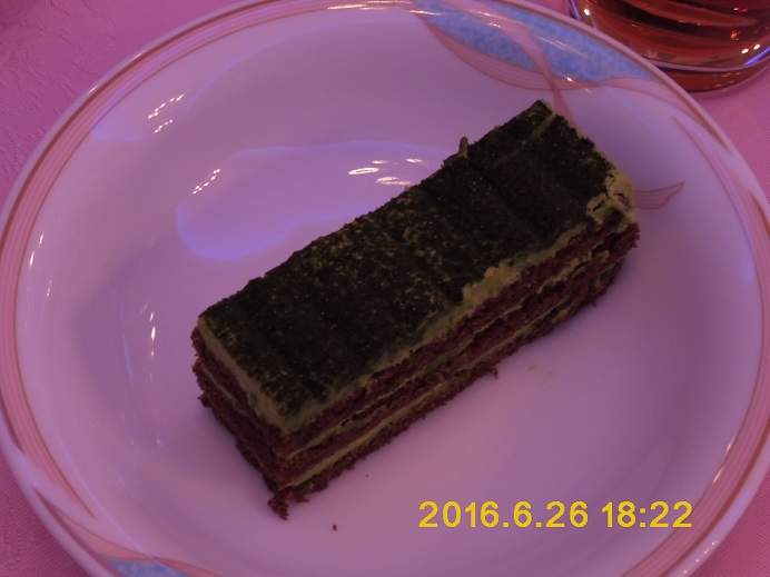今回は抹茶をまぶしたショコラケーキかな。(食べてないので見た目で判断)