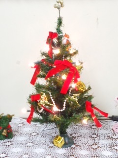 高さ30cmくらいのちっさいツリーですが、一応点滅する電球もつけてます。