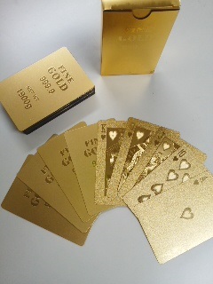 そして取り出して見せてくれたのは、キラキラ輝く金ピカトランプでした。(たぶん紙製)